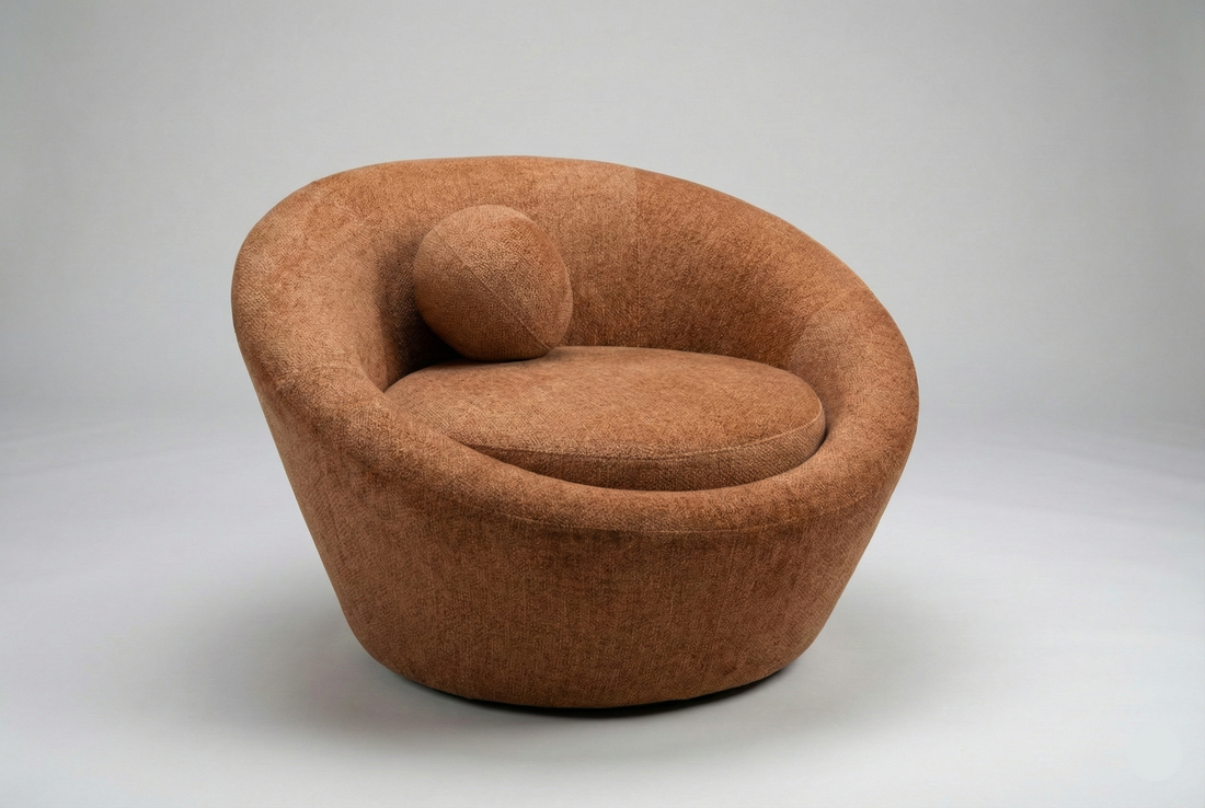 تصميمها المنحني كيخلق إحساس بالدفء والاحتواء، بحال إلى جالس داخل حضن مريح.